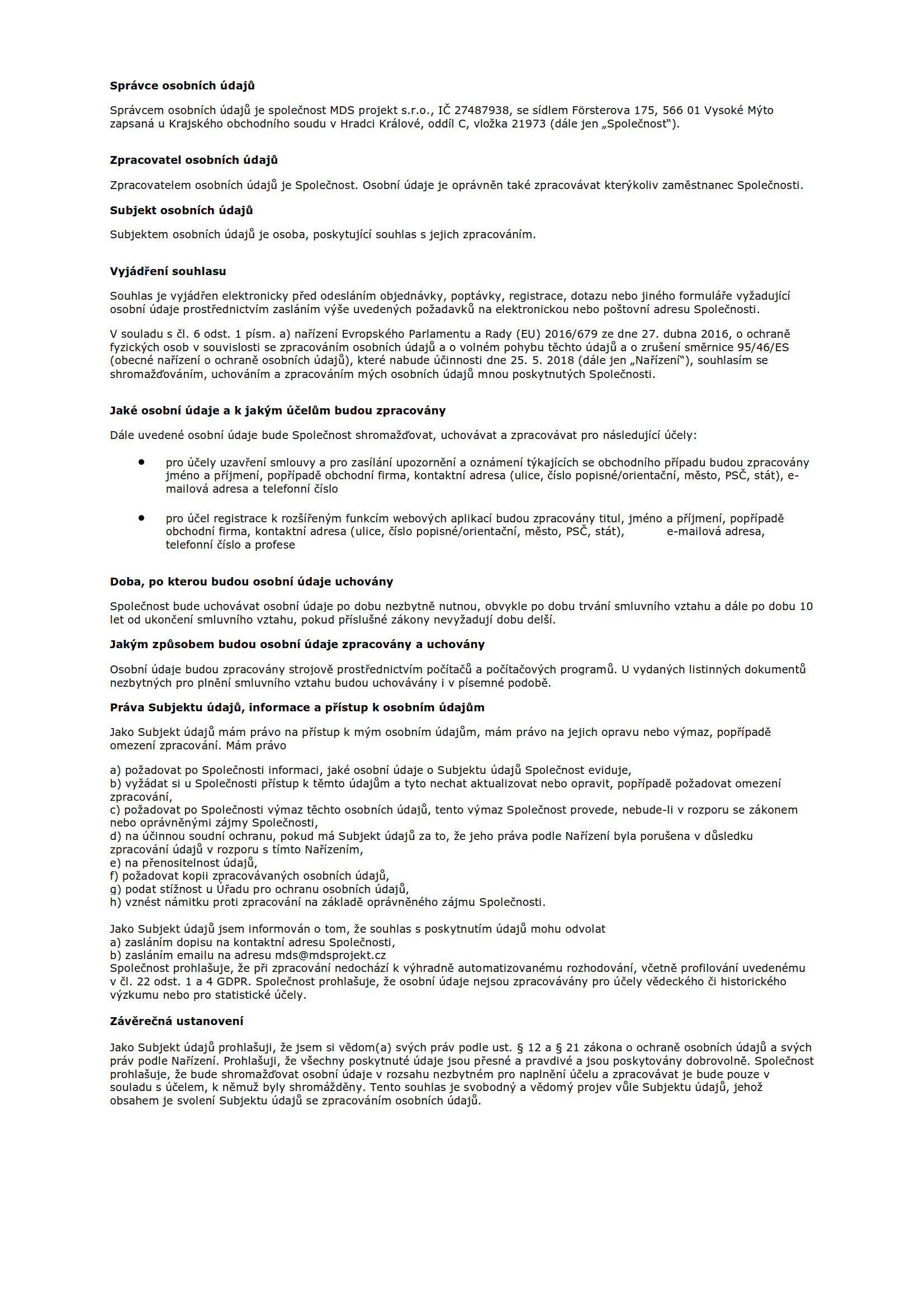 Společnost MDS projekt s.r.o je oprávněná k podnikání v oboru projektová činnost ve výstavbě a výroba, obchod a služby neuvedené v přílohách 1 až 3 živnostenského zákona s tím, že je právnickou osobou s datem vzniku 16.1.2006. Právnická osoba vznikla zapsáním do obchodního rejstříku u Krajského soudu v Hradci Králové v oddílu C, vložce číslo 21973.
